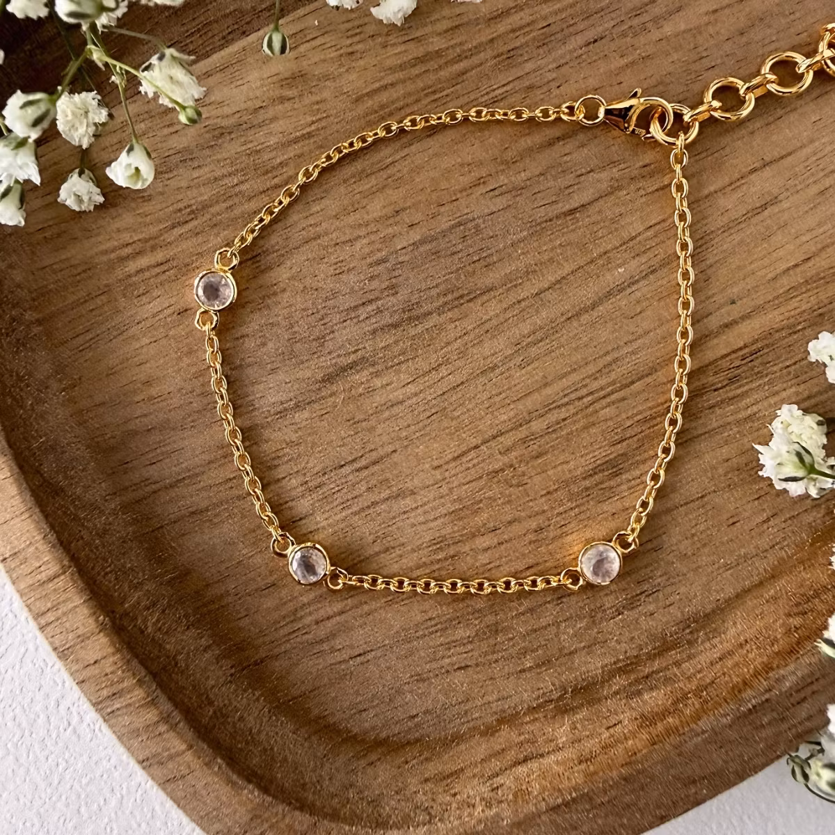 Regnbågsmånsten anses vara en kristall för klarhet, känslomässig harmoni och nya början. Dess mjölkvita skimmer med regnbågsreflektioner ger ett subtilt, mystiskt ljus som gör armbandet lika passande till vardagliga stunder som till festliga tillfällen.